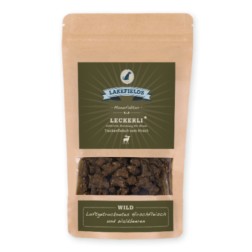 Zusammensetzung: 90 % Frisches Hirschfleisch 8% Kartoffeln 2 % Waldbeeren